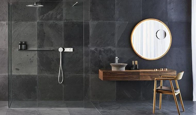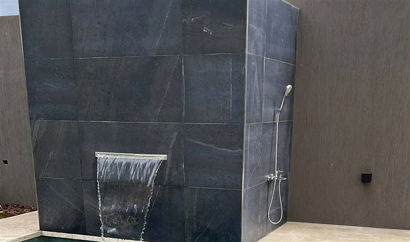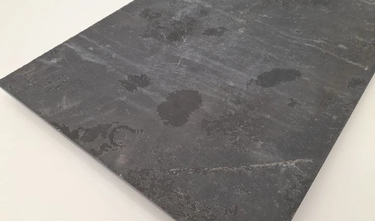 Piedra Natural importada rectificada con tonalidades negras. Peso: 35kg/m2.