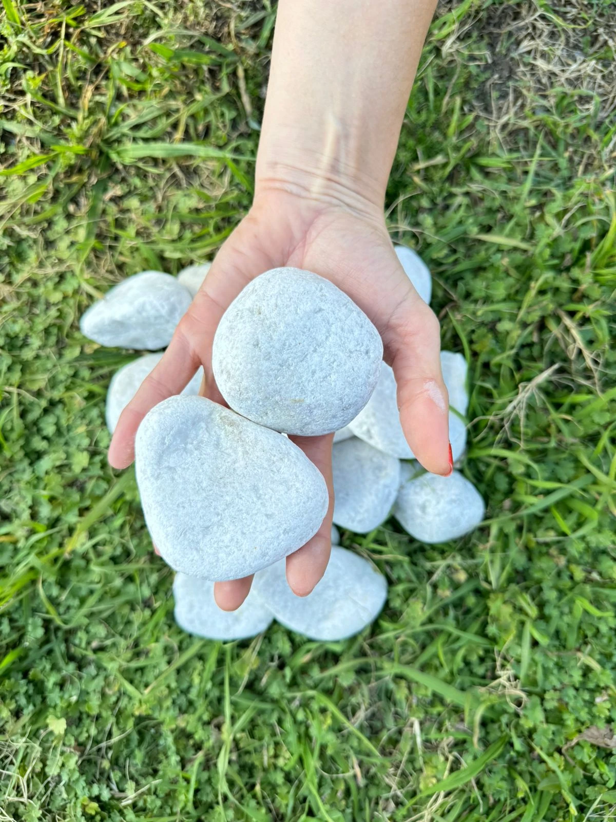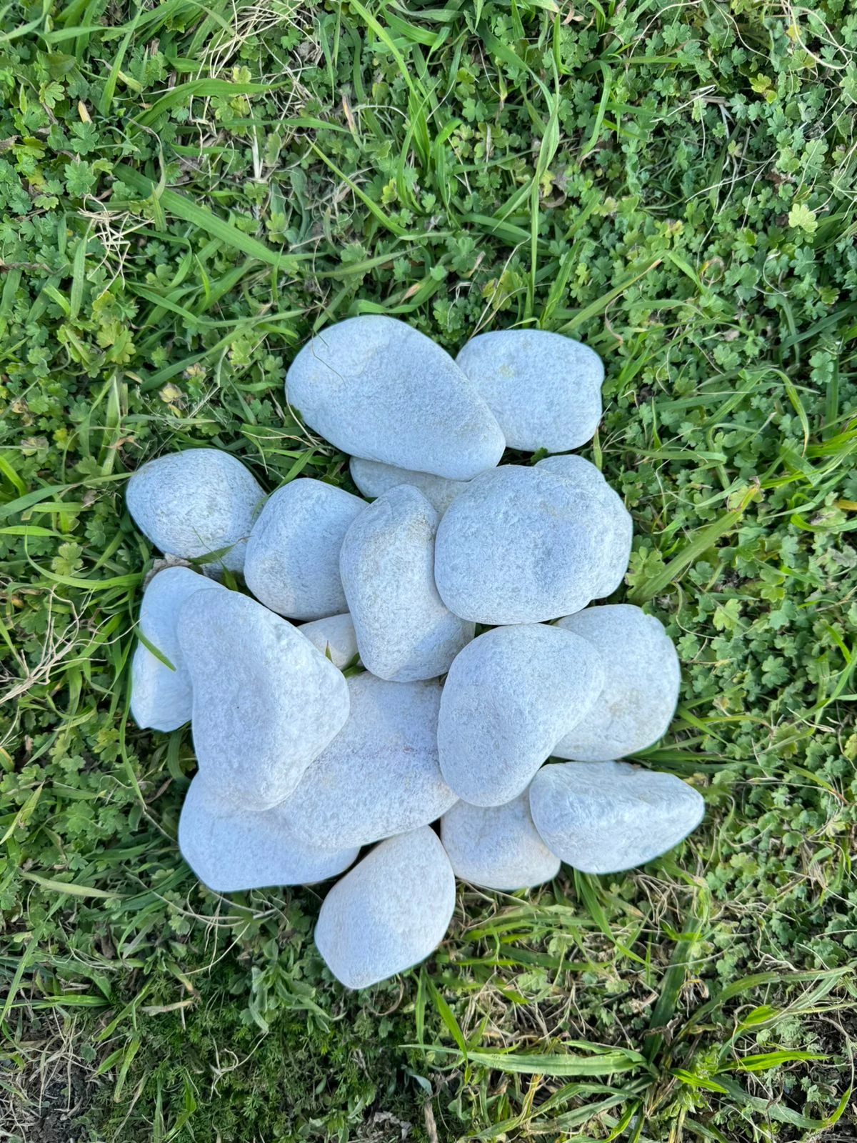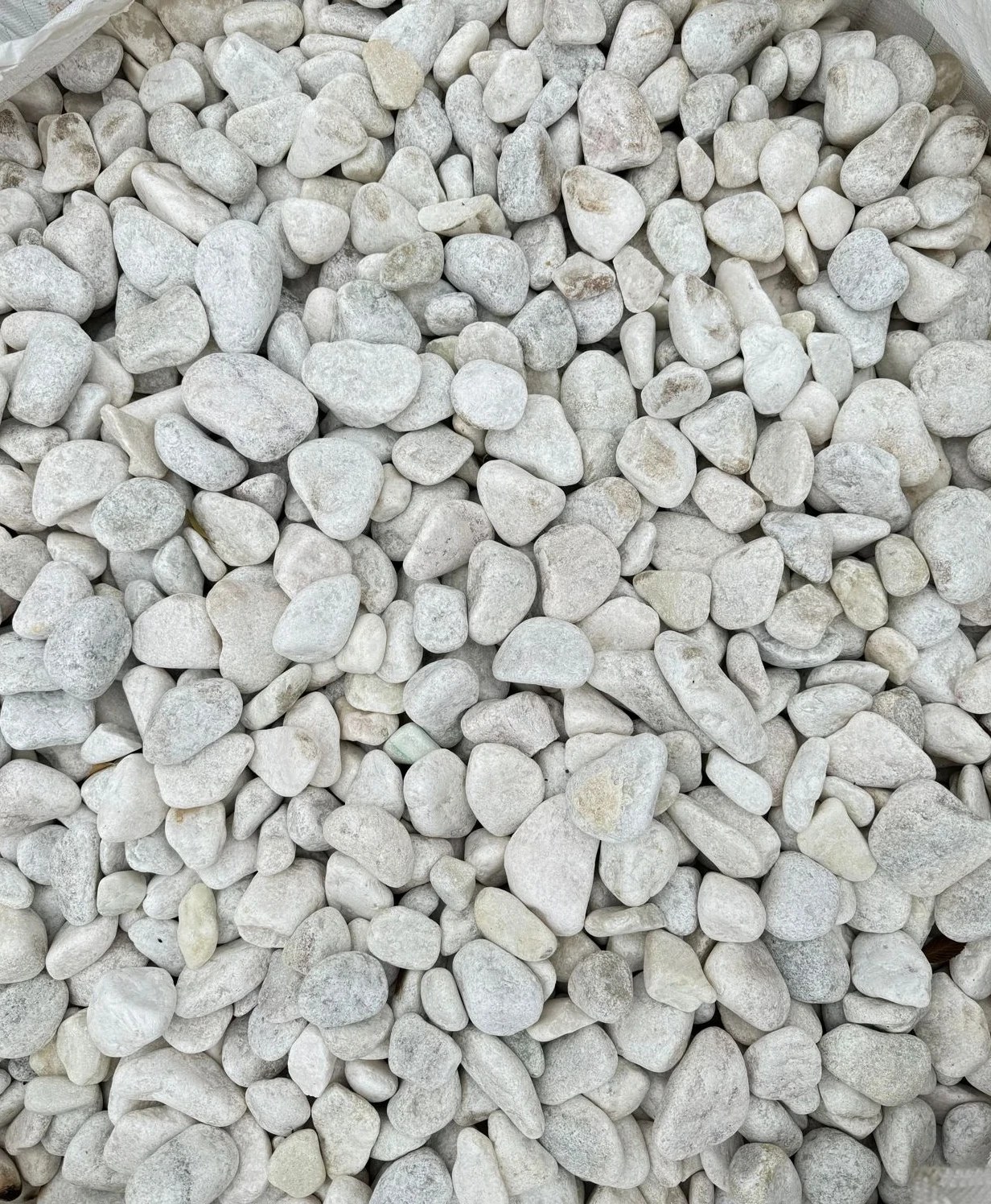 Piedra jardín Tamboreado Blanco. Medida: Mediana. Presentación: Bolsa de 40kg, corroborado en balanza. Rendimiento aproximado: 0.80m2. El rendimiento puede variar según el espesor que se quiera lograr.