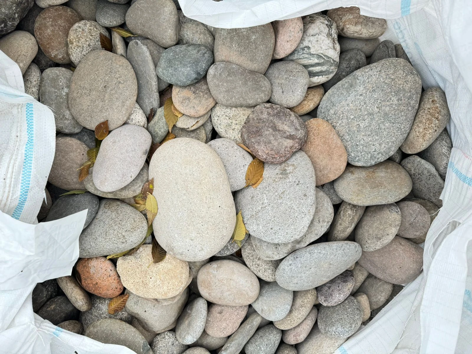 Piedra jardín Tejo/Plato de Rio. Medida: Grande. Presentación: Bolsa de 40kg, corroborado en balanza. Rendimiento aproximado: 0.5m2. El rendimiento puede variar según el espesor que se quiera lograr.